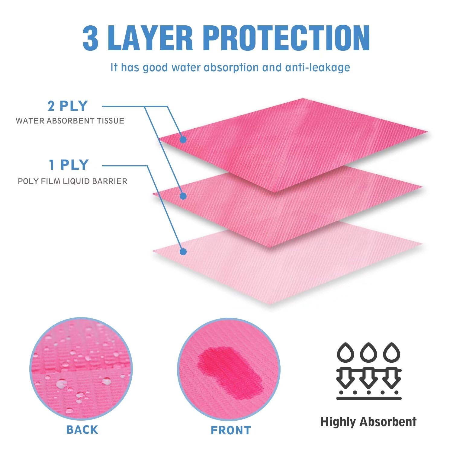 - 3-Ply Protection: Composed of 2-ply of thin paper and 1-ply of polyethylene film lining, the 2-ply absorbent paper layers help absorb liquids and prevent leakage, 1-ply of polyethylene film provides the best liquid barrier